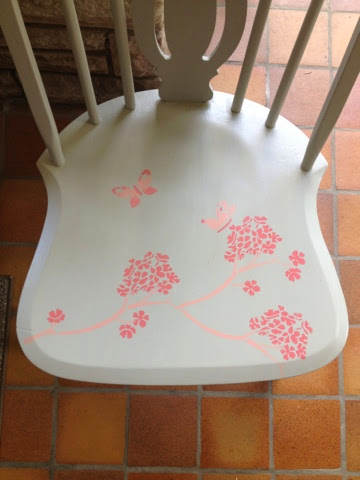 Chair is hand finished in a pale grey with flower and butterfly stencilling.